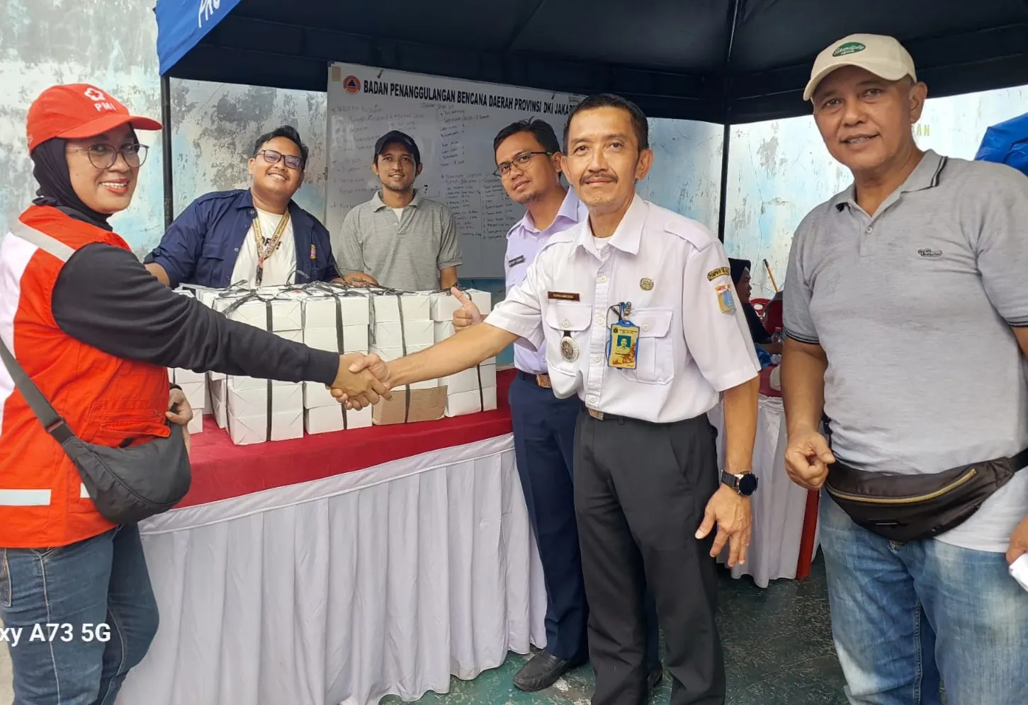 Pemberian bantuan 65 box diterima secara simbolis oleh wakil Camat Kemayoran dan Lurah Kebon Kosong yang kemudian makanan siap saji tersebut diberikan langsung kepada penyintas kebakaran oleh 6 orang relawan PMI di posko pengungsian.