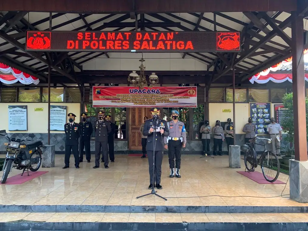 Salatiga – Nasionalnews.co.id-Bertepatan dengan HUT Bhayangkara Ke-75, Kapolres Salatiga AKBP Rahmad Hidayat, S.S. memimpin Upacara Kenaikan Pangkat bagi Personil Polres Salatiga dan memberikan reward atau penghargaan kepada Personil yang berprestasi serta Tenaga Kesehatan (Nakes) yang telah berkontribusi dalam upaya mencegah penyebaran Covid-19 di Kota Salatiga.