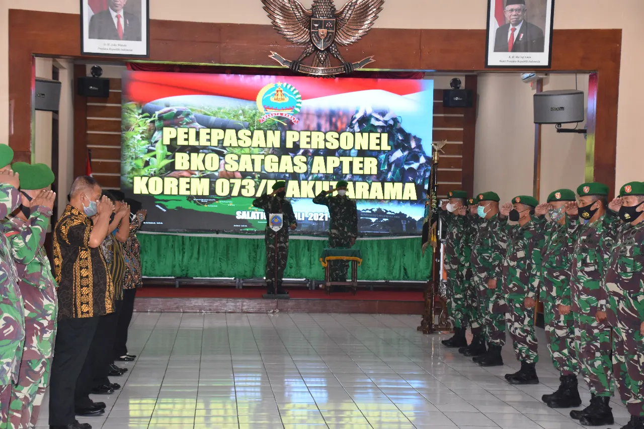 Hadir pada acara pelepasan personel satuan BKO sebagai aparat territorial tersebut, Kasrem 073/Makutarama Letkol Czi Hendro Edi Busono, para Kasi, Pasi serta perwakilan prajurit Korem 073/Makutarama.