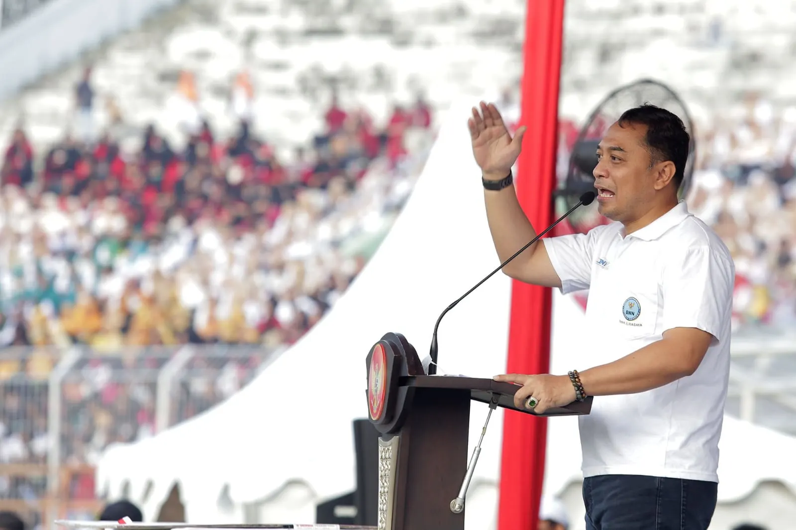 Wali Kota Eri Cahyadi dalam sambutannya menyampaikan banyak terima kasih kepada seluruh Kader Surabaya Hebat dan Relawan Anti Narkoba telah berani memberikan yang terbaik untuk Kota Pahlawan, khususnya menyuarakan Gerakan Anti Narkoba. Dalam kesempatan ini, ia juga menyampaikan terima kasih kepada seluruh jajaran BNN Jatim dan BNN Surabaya telah berkolaborasi memerangi Narkoba di Kota Pahlawan.