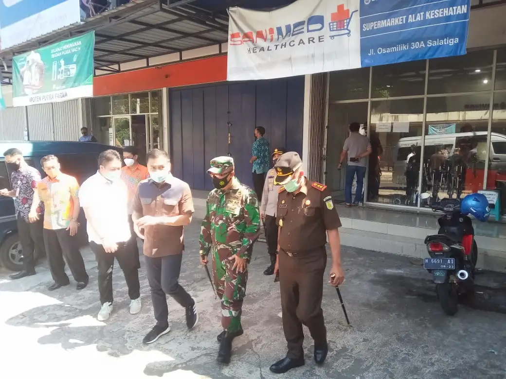 Wali Kota Salatiga H Yulianto SE.MM bersama Kapolres Salatiga AKBP Rahmat Hidayat, S.S., Dandim 0714 Letkol Inf. Loka Jaya Sembada S.IP, Kajari Moch Riza Wisnu Wardhana, SH, MM, Sekda Ir Wuri Pujiastuti MM , dan Tim Satgas memantau prasarana pendukung pelayanan kesehatan bagi pasien COVID- 19