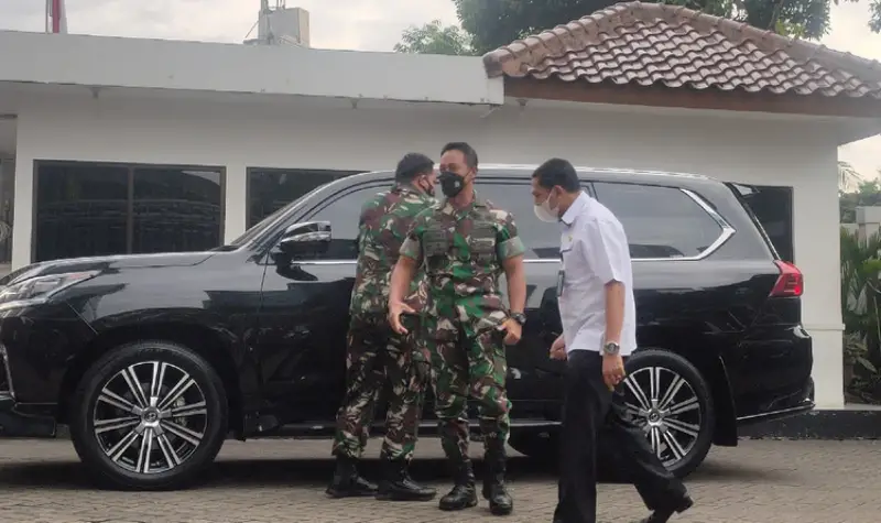 Jakarta, Nasionalnews.co.id – Panglima TNI Jenderal Andika Perkasa mengunjungi rumah jabatan Ketua DPD RI LaNyalla Mattaliti, Jalan Denpasar Raya, Kuningan, Jakarta Selatan. Andika disambut langsung oleh LaNyalla. Rabu 24/11/2021, Jenderal Andika tiba di rumah jabatan LaNyalla. Saat turun dari mobil, Andika langsung disambut Ketua DPD, LaNyalla.