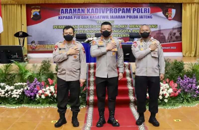 SEMARANG, Nasionalnews.co.id – Kepala Divisi Profesi dan Pengamanan Polri, Irjen Pol Ferdy Sambo mengunjungi Polda Jawa Tengah. Bertempat di gedung Borobudur Mapolda Jateng, Kadivpropam memberikan arahan terkait pembinaan pencegahan perilaku menyimpang anggota Polri, Kamis (20/1) siang.