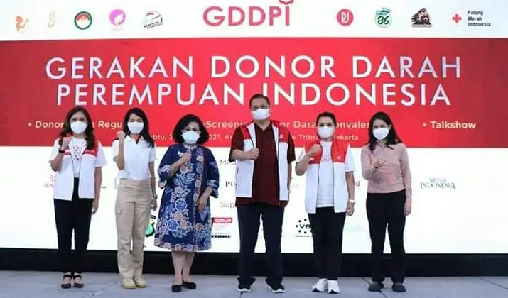 Ir.Airlangga Hartarto,bersama Ibu Yanti Airlangga yang juga merupakan salah satu penggerak acara ini. GDDPI dan komunitas-komunitas perempuan Indonesia lainnya bahu membahu bersama Palang Merah Indonesia (PMI) meringankan beban para pasien yang membutuhkan pasokan darah.