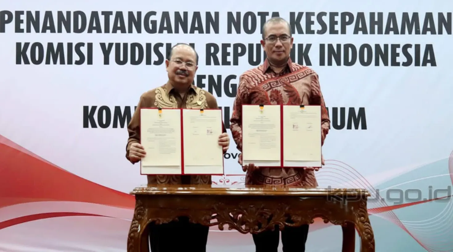 Penandatanganan nota kesepahaman dilakukan oleh Ketua KPU Hasyim Asy’ari dan Ketua KY Amzulian Rifai, serta disaksikan oleh jajaran Setjen KPU dan KY.