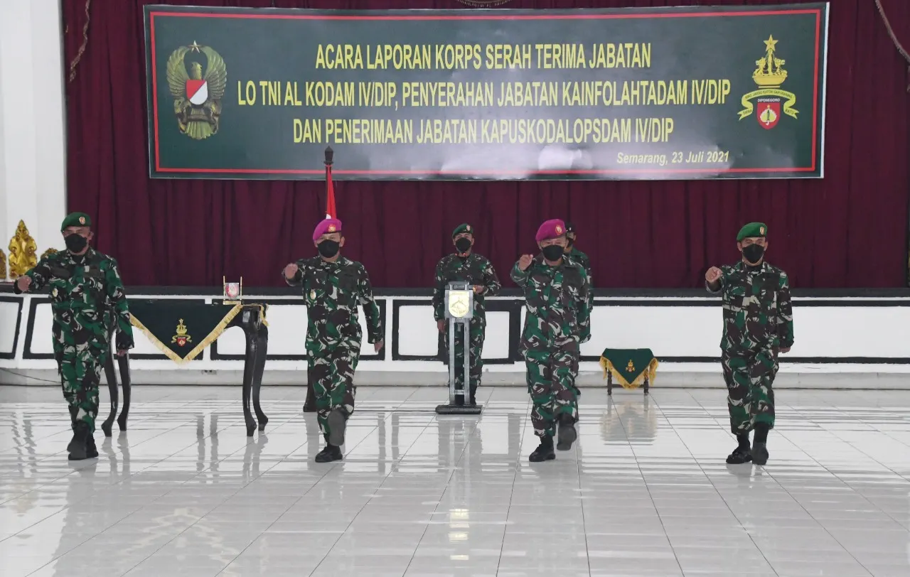 Dalam pelaksanaannya diserahterimakan jabatan lama LO TNI AL dari Kolonel Mar Roy Budhi Subroto kepada Letkol Mar Hariyono Masturi, M.Tr.Hanla., M.M. dan penerimaan jabatan baru Kapuskodalopsdam kepada Letkol Inf Slamet Riyadi, S.Pd. serta penyerahan jabatan Kainfolahtadam Kolonel Inf Gufron, S.Ag kepada Pangdam IV/Diponegoro.