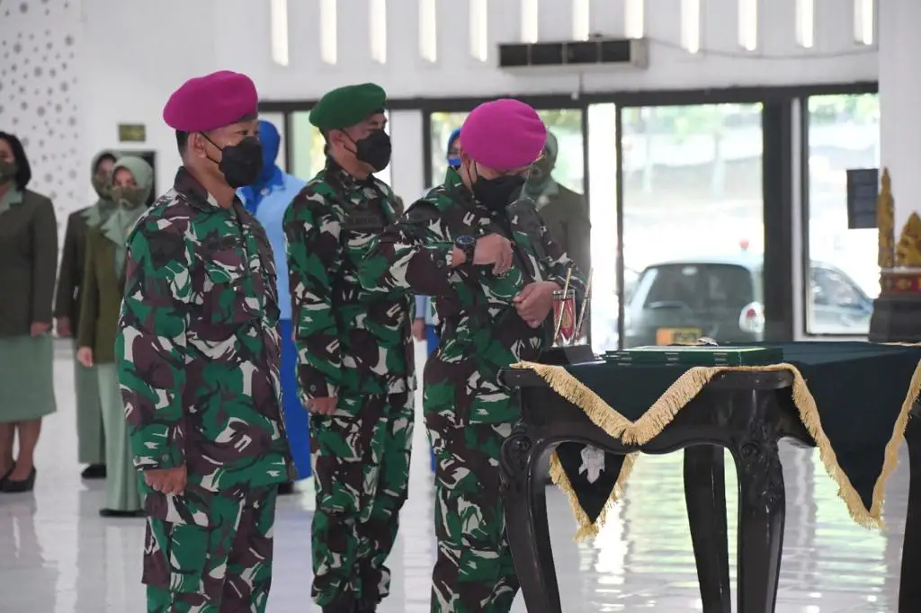 Semarang, Nasionalnews.co.id-Pangdam IV/Diponegoro Mayjen TNI Rudianto pimpin acara laporan Korps serah terima Jabatan LO TNI AL dan penyerahan jabatan Kainfolahtadam serta penerimaan jabatan Kapuskodalopsdam IV/Diponegoro bertempat di Balai Diponegoro, Komplek Makodam IV/Diponegoro, Watu Gong, Jumat (23/07/2021).