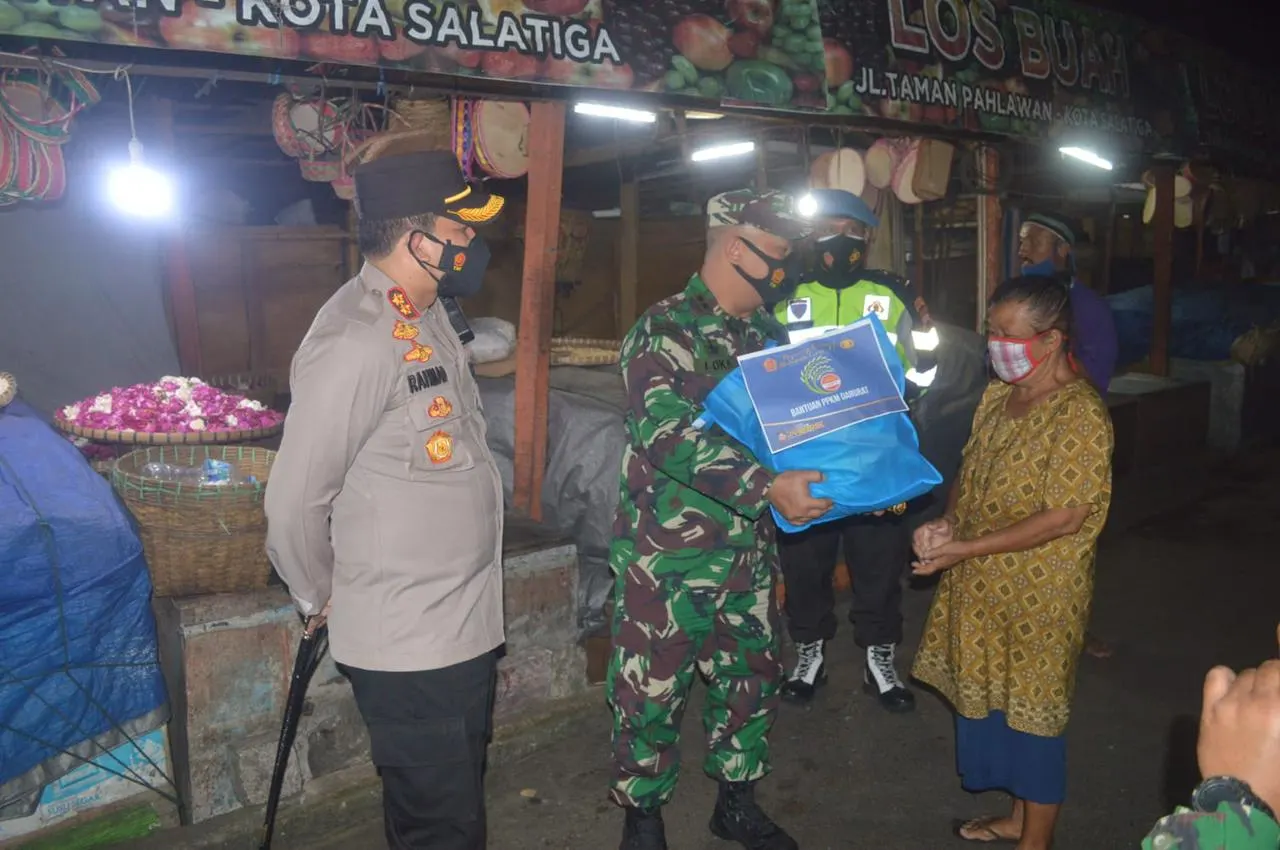 Salatiga, Nasionalnews.co.id-Dalam rangka membantu beban masyarakat pada masa pandemi dan PPKM Level 4, Polres Salatiga Polda Jawa Tengah menggelar Apel operasi gabungan Skala Besar dengan Istansi terkait yaitu TNI, Satpol PP dan Dishub dilanjutkan dengan pembagian Paket Bantuan sosial (bansos) dari pemerintah bagi masyarakat yang terdampak pandemi covid19, Apel Skala besar tersebut dilaksanakan secara serentak oleh seluruh Polres Jajaran se-Polda Jateng dilaksanakan pada hari Jumat tanggal 23/07/2021 pukul 21.00 Wib.