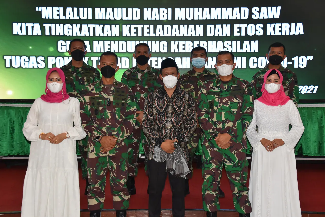 Peringatan Maulid Nabi Muhammad SAW dengan mengusung tema “MELALUI MAULID NABI MUHAMMAD SAW 1443 H/2021 M KITA TINGKATKAN KETELADANAN DAN ETOS KERJA PERSONIL KODAM IV/DIPONEGORO GUNA MENDUKUNG KEBERHASILAN TUGAS POKOK TNI DI TENGAH PANDEMI COVID-19”