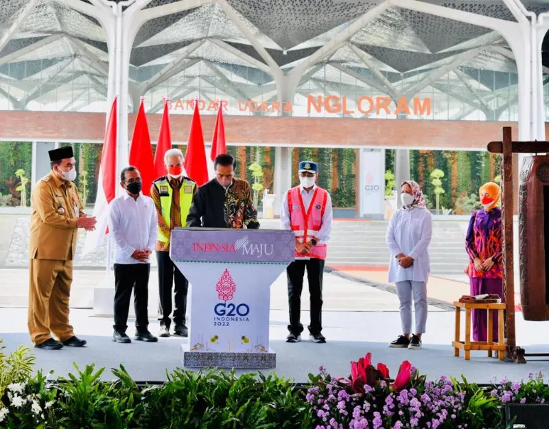 Blora, Nasionalnews.co.id-Presiden Joko Widodo bersama Ibu Iriana Joko Widodo mengawali kunjungan kerjanya di Provinsi Jawa Tengah dengan meninjau sekaligus meresmikan Bandar Udara Ngloram, Kabupaten Blora, pada Jumat, 17 Desember 2021. Presiden berharap keberadaan bandara dengan landas pacu sepanjang 1.500 meter tersebut dapat mempercepat aktivitas ekonomi masyarakat sekitar.
