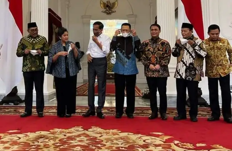 JAKARTA – Ketua MPR RI Bambang Soesatyo bersama pimpinan MPR RI lainnya memastikan kepada Presiden Joko Widodo bahwa Pokok-pokok haluan Negara (PPHN) akan dihadirkan sebagai Bintang Pengarah Bangsa Indonesia tanpa melalui Amandemen konstitusi. MPR RI periode 2019-2024 akan melakukan terobosan melalui konvensi ketatanegaraan. Pimpinan MPR RI juga menyampaikan kepada Presiden Joko Widodo mengenai hasil kajian Badan Pengkajian MPR RI terhadap substansi dan bentuk hukum Pokok-Pokok Haluan Negara (PPHN) sebagai bintang penunjuk arah yang menjamin kesinambungan program pembangunan.