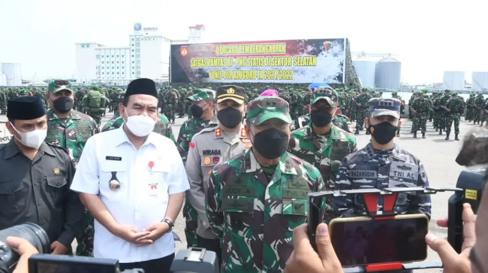 Semarang, Nasionalnews.co.id – Pangdam IV/Diponegoro Mayjen TNI Rudianto memimpin upacara pemberangkatan 450 personel Satgas Pamtas RI-PNG Yonif 410/Alugoro Sektor Selatan Wilayah Papua TA 2021, bertempat di Pelabuhan Tanjung Mas, Semarang. Rabu (20/10/2021).