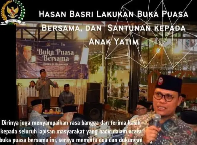 Karena itu sebagai implementasi hablumminannas, kita berharap keberkahan Ramadhan juga bisa dirasakan oleh para anak yatim melalui kegiatan sosial seperti buka puasa bersama dan santunan anak yatim seperti yang dilakukan oleh Senator kita Bapak Hasan Basri.