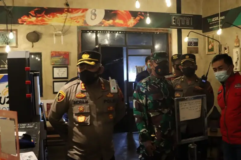 Salatiga, Nasionalnews.co.id – Tiga Pilar Utama Kota Salatiga, Walikota Salatiga Yuliyanto SE MM, Kapolres Salatiga Polda Jateng AKBP Indra Mardiana SH SIK MSi dan Dandim 0714 Letkol Inf Ade Pribadi Siregar SE MSi, terus berupaya mencegah penyebaran Covid-19 varian Omicron di Kota Salatiga, salah satu diantaranya dengan memantau penerapan protokol kesehatan ketat dan pembatasan aktivitas masyarakat di tempat hiburan maupun fasilitas publik.