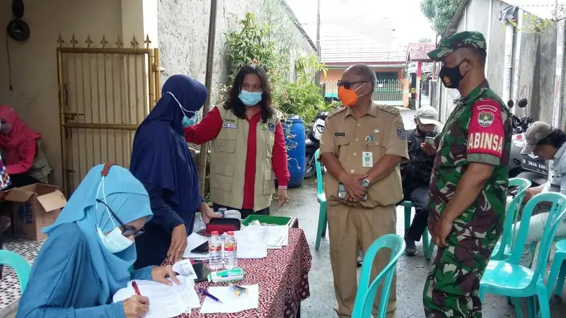 Depok. Nasionalnews.co.id- Koramil 03/Sukmajaya Kodim 0508 Kota Depok, melakukan Vaksinasi Aglomerasi Covid-19 Drive Vaksin, di rumah kediaman Ibu Erika Jalan citandui 3 Nomor.173. Rt 06/02 Baktijaya, Sukmajaya Depok. Selasa, (7/12/21)