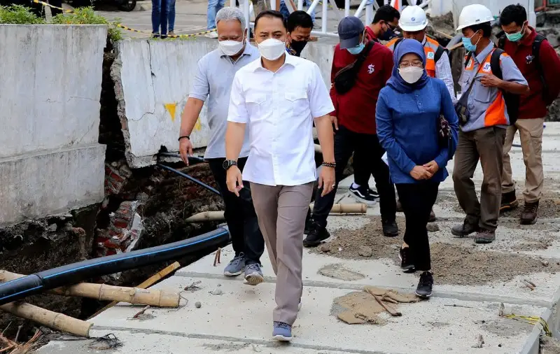 0Surabaya-Nasionalnews.co.id-Wali Kota Surabaya Eri Cahyadi mengawali hari kerjanya dengan melakukan pengecekan sejumlah lokasi pekerjaan konektivitas saluran atau box culvert pada Senin (18/7/2022) pagi. Sejumlah saluran itu berada di Jalan Embong Kenongo, Jalan Simpang Pojok, Jalan Simpang Dukuh, dan Jalan Praban Surabaya.