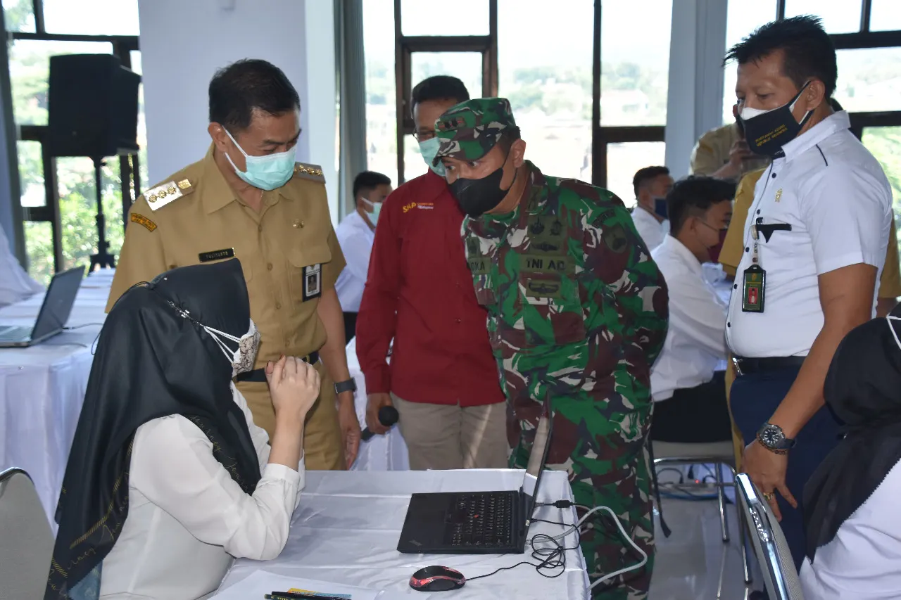 Salatiga, Nasionalnews.co.id – Komandan Korem 073/Makutarama Kolonel Arm Putranto Gatot Sri Handoyo S.Sos., M.M., dalam hal di wakili oleh Kainfolata Korem 073/Makutarama Kapten Inf P. Sutarjo meninjau lokasi dan monitoring pelaksanaan Seleksi Kompetensi Dasar (SKD) CPNS pemerintah kota Salatiga, bertempat di Gedung Setda kota Salatiga, Jl. Sukowati No. 51. Salatiga, Jawa Tengah. Senin (20/09/2021).